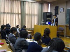 その様子がこちらです。写真だけでは少しわかりにくいですが、実際に講演会が行われている部屋は高校1年生でいっぱいなので、コンピュータ室に講演の様子を実況中継するという星美学園初めての試みを行いました。生徒からの反応も上々で、講演会は大成功に終わりました!