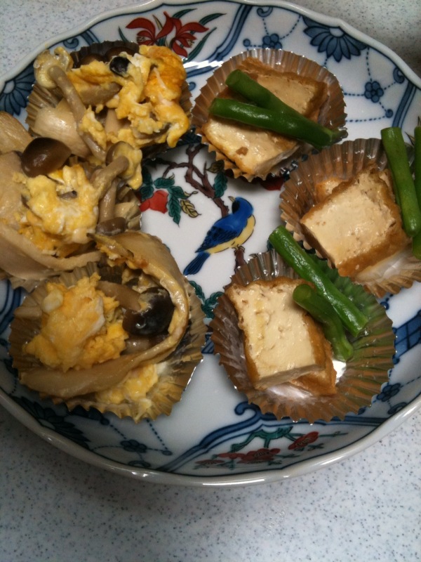 これに、さつまいもを甘く煮たものと、ちくわにチーズと梅を