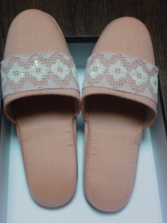 MOONさんに教えていただいた、スリッパにレースを貼ったものを作ったのだけど。。。
