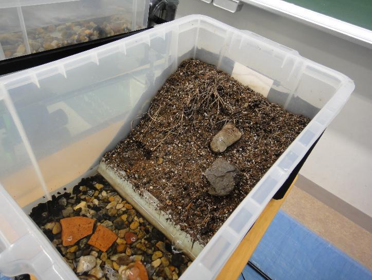 小野学園中高では、昨年より品川区でのホタル自生を目指して研究しています。昨年は約400匹のホタルがきれいに飛び立ちました。そのメス達が昨年7月に卵を産みました。現在、幼虫は水の中で生活していますが、そろそろ自分たちの寝床を探して土の中へと移動してきます。約2ヶ月、土の中で過ごした後、6月には今年もまたきれいな蛍の光が見れることを楽しみに準備を進めています。