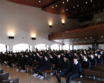 講堂に集まった高3生には、各クラブからの応援メッセージと先生方からの温かいビデオレターが贈られ講堂は笑いあり涙ありのひとときとなりました。