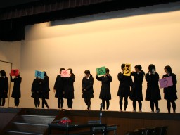クラス対抗伝言ゲームではみんなで「受験頑張ろう」の言葉をつくりました。またみんなで心を一つに「栄光の架け橋」を歌いました。