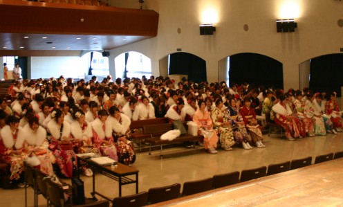 1月9日(月)の成人の日、山脇学園にたくさんの卒業生が集まりました。この日は、山脇学園高等学校62回卒業生の皆さんが成人を迎えたお祝いの日です。幹事の皆さんの呼びかけに、たくさんの卒業生が母校に集まり「成人式同期会」が行われました。