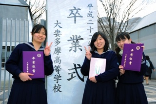 大妻多摩では、先週の金曜日から学年末考査が始まり、来週が保護者会そして修了式と卒業式と続きます。もっと早くに卒業式を行う私学も多いようですが、大妻では伝統的に3月中旬過ぎです。国公立大学前期の結果が出終わる頃まで学校はあります。昨日久しぶりに登校した高校3年生たちの顔は、大学受験という大きな波を自分の力で乗り越え、なんだか少しだけ大人っぽくなったように見えました。そんな顔の卒業生を見送ることができるので、この時期になったのかもしれません。写真は昨年の高校卒業式と春のキャンパス風景です。