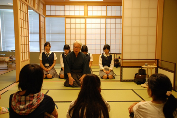 先生と在校生がお手本をしめしながら、少し緊張感のある空気のなか、