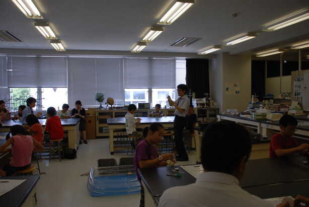 1枚目の写真は、化学実験室で行われた理科の講座のひとコマです。