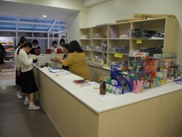 お弁当を食べることのできる自由スペースや文具・スイーツなをそろえたショップなどがあり多くの生徒たちが見にきていました。