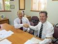 写真は、姉妹校調印式とブリスベンの様子、Brigidine Collegeのものです。本校校長と握手をされているのが、相手校のBrendan Cahill校長先生です。Cahill 先生は3年前の冬に本校に生徒を連れておいでになり、その時から連絡を取り合いながらこの姉妹校提携に向けてご尽力してくださいました。寛大かつ温厚で、優しい瞳の先生です。今回の滞在中も、大変お世話になりました。