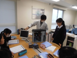 科学的探究プログラムの活動の中で、中学3年生はいくつかのグループに分かれて