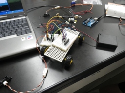 山脇祭後は、動作を改良するとともに、楽譜をプログラミングして、軽快な音楽を奏でながら走らせています。3月の発表会に向けて、残りの研究時間も少なくなりました。最後まで楽しく、そして満足のいく作品ができるように頑張ります。
