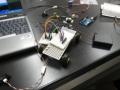 「まうん」はメンバーの一人が作った、壁にそってチョコチョコと動き回る「ねずみ型ロボット」からヒントを得てできた、障害物をよけながら机上を走行する自律型のロボットです。ロボット本体は、様々なパーツを自分達で選び、組み合わせて作り上げたもの。そこに、大学生も使用している「Arduino」というマイコンを載せてプログラムを組んでいます。途中、プログラムが難しくてなかなか研究が進まなかったり、どうしても旋回してくれずに、タイヤの種類や位置、数をいろいろ変えてみたりという所がかなり大変でした。それらを乗り越えて11月の山脇祭までには2階建ての本体が完成し、プログラムも「OOcm以内に障害物があったら左に回る」「前方に床が無ければ後退して旋回する」という所まで組むことができました。ただし、山脇祭本番では、直前まで元気に走っていた「まうん」がまさかのフリーズを起こしてしまい、たくさん集まっていただいたお客様方にお披露目することはできませんでした。「まうん」はたくさんの線でつながって回路が組まれており、その1つでも不調があると、とたんに動かなくなってしまうのです。