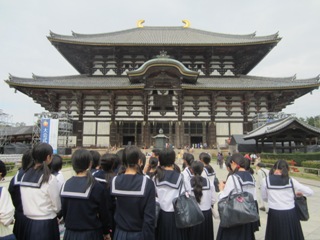 大妻多摩ではこのような考えから、修学旅行は自国の歴史や文化をしっかりと学ぶ機会として、広島・岡山と奈良・京都へと出かけています。毎年そうですが、原爆資料館の展示物の前で、集合時間を忘れるくらいメモを取ったり、見入って立ちつくしている生徒、優しい目の仏像の前から動こうとしない生徒の姿を見るにつけ、我々の修学旅行の質の高さを誇りに思います。また、毎年旅行後に報告されることですが、修学旅行先での本校生徒のマナーや説明を聞く態度の良さに、周りの方からお褒めの言葉をいただきます。今年もお褒めの言葉を、中高それぞれの旅先でたくさん頂きました。我々としては長い伝統の中で当たり前のことのように普段指導していることなので、「そうなのかな」と思わされますが、生徒たちが学校外の方に褒められることは当然うれしいし、誇らしい限りです。詳しくは本校のホームページでご覧下さい。