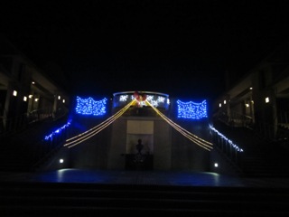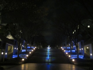 12月に入り、毎年この時期は、期末考査そして保護者会と慌ただしい中であっという間にクリスマス、そして年末となります。何かに追われているような、文字通り「師走」という年瀬が常です。つい少し前まで美しい紅葉で彩られていたキャンパスの学園通りも、今はすっかり葉も落ちてしまい、それが余計に冬を感じさせ寒さが増します。でも大妻多摩では、毎年この時期になると紅葉に代わって目と心を楽しませてくれるものが表れるのです。それは、キャンパスのイルミネーションです。夜、学校を出る頃には点灯されているので、冷たい風に吹かれながらも楽しみながら唐木田駅へと向かうことができます。もちろん、華やかさではカトリックの学校のクリスマス・イルミネーションや多摩センター駅などの大きな駅や繁華街のそれにはとてもかないませんが、私には本校のこのかわいらしいイルミネーションが、「今日もご苦労さま。今年ももう少しだから頑張って!」とささやいているようで、少しだけ暖かな気持ちで家路につくことができるのです。さらに、冬は空気が澄んでいるので、月や星もよく見えます。こちらは正に天然のイルミネーションと言えるものですが、それがまた学園通りのイルミネーションによく映えるのです。考えてみると、毎日学校の帰りにこのような美しい光景に見送られるのも、『ぜいたく』な話です。一般の方には、時間的にご覧になることは難しいですが、受験生の皆さんは、来年本校の生徒となってこのイルミネーションを楽しんで下さい。
