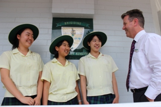 大妻多摩では、国際化の進む時代に対応すべく、英語教育のグローバルスタンダード化と国際交流プログラムを現在進めております。2010年より始めたオーストラリア、ブリスベンの私立女子校、ブリジディーンカレッジとの国際交流は、2013年3月に姉妹校提携へと進展し、2014年には高校1年生(選抜)を第3学期中同校へホームステイ派遣留学させる「ターム留学制度」へと発展しました。今年の9月には、日本語を選択しているブリジディーン生徒3名を、本校生徒のご家庭にホームステイでお引き受けします。