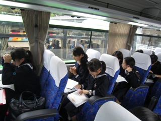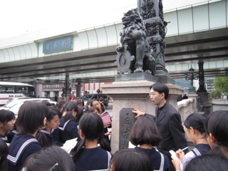 当日、中1の生達は各クラスで新宿から貸し切りバスに乗り、都心の学習スポットを巡りました。車窓から見えてくるいくつかの見学スポットについて、社会科の先生から説明を受け、自分でメモを取ります。バスを降りて、そのスポットの周りを実際に歩きながら史跡や建物を直に自分の五感で感じる時間も取りました。例えば、銀座を歩きながら何軒かの老舗のお店を訪ねたり、日本橋、三井本館、日本銀行、旧岩崎邸などを見学しながら、先生から色々な話を聞きました。どんなに写真やビデオを駆使しても、やはり「百聞は一見に如かず」で、実物を目の当たりにすると歴史や風格を感じることができるし、そこで働いていらっしゃる方々の生の声も聞けます。普段教室の中で行われる授業とは一味違う勉強になります。ブログをご覧の皆さん、日本橋にある「日本橋」という文字が、徳川慶喜が書いたものであることをご存じでしたか。大妻多摩では、このように6年間の中で、さまざまな体験授業、校外学習が用意されています。
