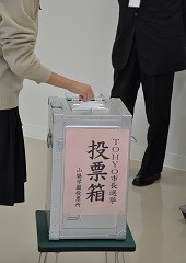 生徒たちは、緊張しながら投票用紙を受け取り、記載して投票箱へ入れるという一連の流れを行ないました。