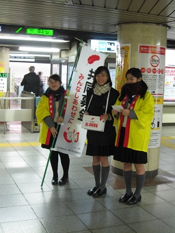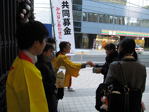 放課後、学年全員で分担を決めて、赤坂見附駅・赤坂駅・永田町駅に立ち、募金の協力を呼びかけました。初めてボランティア活動をした生徒も多くいましたが、募金をして下さる方々の温かい気持ちに触れ、この活動に参加できてよかったという生徒がたくさんいました。