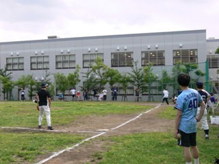 昨年は梅雨の合間の晴れとなり、外でソフトボール大会が行われました。みなさん初めて会ったのにすぐにうち解け、チームワーク良く大盛り上がり、ファインプレーも飛び出す会となりました。運動の後は、学食で「懇親の宴」も開かれ、さらに意気投合したお父様方は文化祭での露店企画に向けて、色々な案を出されておりました。