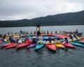 ☆私は今日初めてカヌーをしました。前から「やってみたい!」と思っていたのでできて良かったです。話を聞いている時はできそうだと思ったけれど、実際やってみるとクルクル回ってしまい、かなり難しかったです。乗っているうちに少しだけ漕げるようになりました。友達とおしゃべりしたり、協力したりしながらのカヌーはとても楽しかったので、またクラスのみんなとやってみたいです。