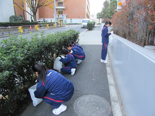 昨年に引き続き、中学2年生は、12月11日に青山通りと一ツ木通りの清掃活動を行いました。