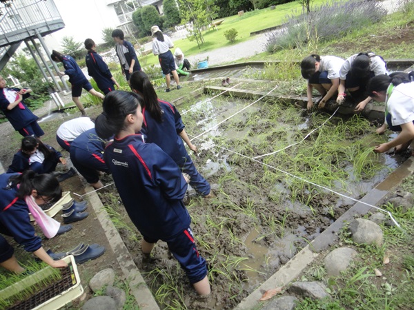 4月24日の活動時にセルトレイに播種をして6月9日の午後、田植えを行いました。