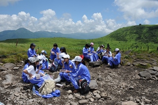 終業式の後、中学1年生はすぐに林間学校に蓼科方面に宿泊に行きます。大妻多摩での最初の宿泊行事です。「そば打ち体験」、「紙すき体験」、「ハイキング」に「飯盒炊さん」などを体験します。夏の太陽を受けながら、クラスみんなで登る山。山の頂上でみんなで食べるおにぎりは、景色の美しさも手伝って本当においしいです!きっと良いおもいでになることでしょう。6年生の皆さん、来年の夏は大妻多摩で林間学校ですよ。さあ、もうすぐ夏休み。暑い日が続いていますが、ガンバレ!