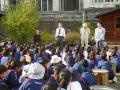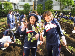 畑に入ると、皆一生懸命土を掘り返していました。土深くもぐった芋も、友達同士で協力して掘っていました。小ぶりの芋が多かったですが、こぶし2つ分ほどの大物が獲れた生徒もいました。