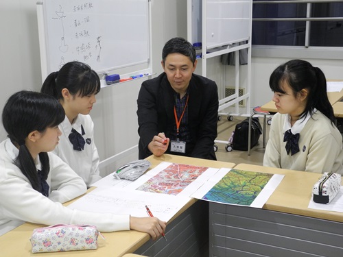 そこで、「災害」と結びつけて、赤坂に来ている人は災害が起きたらどこに逃げるのか?学校周辺の地理と歴史を紐解いて探ってみようということで、古地図や地形分類図を使って色々と学びました。