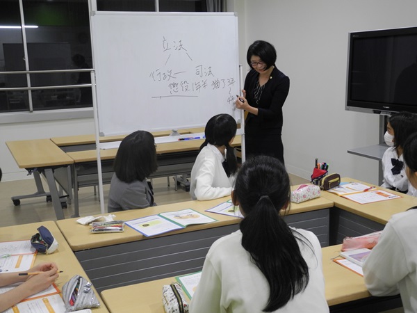 民事裁判と刑事裁判、実刑と執行猶予、裁判の手続きなどのレクチャーを受け、初めて聞くことも多くありました。生徒からも質問が次々に出てきて、活発な質疑応答になりました。
