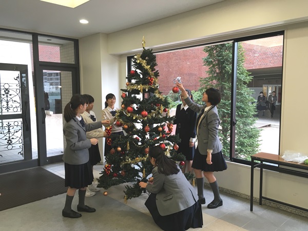 2学期の期末テストが終わりました。 中学生徒会の生徒がクリスマスツリーの飾り付けをしました。 学園のあちらこちらにクリスマスが近づいています。