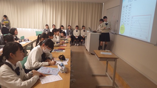 山脇祭での中間ポスター発表を経て、1年の締めくくりとしての口頭発表です。年が明けてからチームごとに研究成果のまとめに入りましたが、どのようにまとめるか試行錯誤を繰り返しパワーポイントにまとめて、やっとプレゼンテーションの練習にこぎつけました。