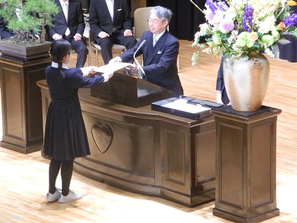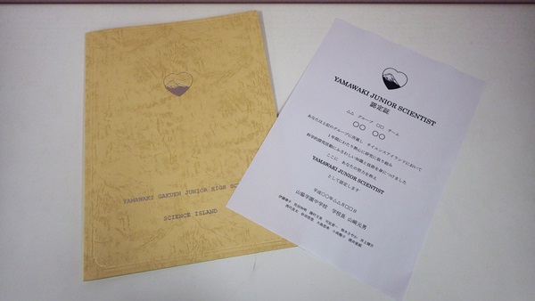 3月22日の中学校卒業式では、校長先生から「YAMAWAKI JUNIOR SCIENTISUT認定証」を授与されました。