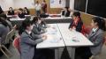 戻ってきた後は、実際に日野自動車で働いている女性技術者の方を交えて座談会を行いました。初めに自己紹介を聞き、生徒たちからも仕事のことや学生の時の話などいろいろなことを聞いていました。