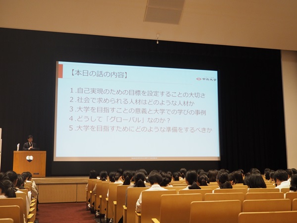 5月14日、第1回ユニバーシティウィークでは、中央大学入試センターの大久保様にお越しいただき、「文系の学びガイダンス」を実施しました。