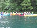 1日目、バスで長野県白馬村へ向かいました。まずは、青木湖でカヤック体験です。はじめはなかなか思うように進まず苦労していましたが、慣れてくると上手にパドルを扱い漕いでいました。