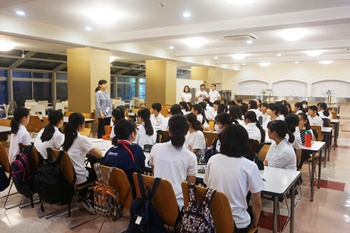 1日目の朝は、学校で結成式を行いました。引率の先生方からの臨海学校に向けてのお話を、全員が真剣に聞き、緊張感のある中にも意気込みを感じました。