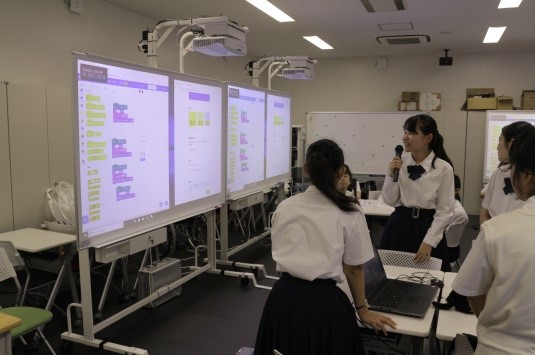 また、大学職員の方によるキャンパス見学や、情報通信学部の施設や研究の紹介もしていただきました。参加した生徒たちは、情報学部やそこで行われるAIやプログラミングの研究について、講座と大学見学を通じて具体的なイメージを得られたようでした。