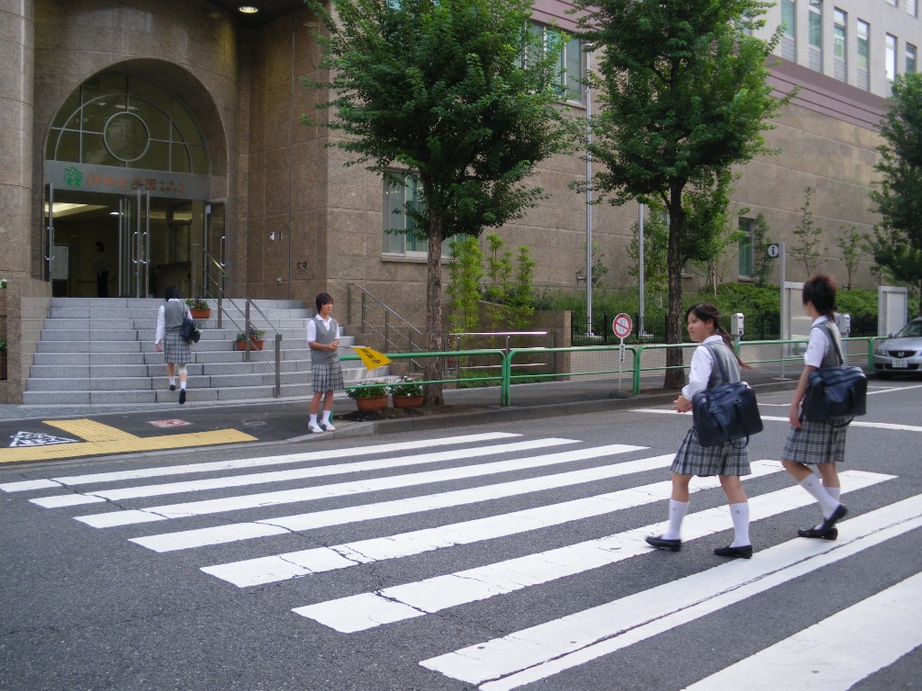 神田女学園の風紀委員は、春に続いて、この秋にも交通安全週間に協力しました。 学校の前の横断歩道は、私たち生徒の他にも、朝たくさんの人たちが通ります。 横断歩道で、風紀委員の生徒が、笑顔で黄色の旗を差し出すと、急いでいる車も止まってくれます。