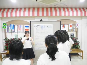 「総合的な探究の時間」の取り組みの一つとして、夏季学校で訪れる富士山・伊豆半島をフィールドとした探究活動を行いました。事前に富士山や伊豆半島についての歴史や文化などを学び、各グループで問い(仮説)を立て、夏季学校当日は自主研修の時間を設けて現地で検証・中間報告も行いました。2学期からの授業内で成果をまとめ、10月11日・18日に報告会を行いました。