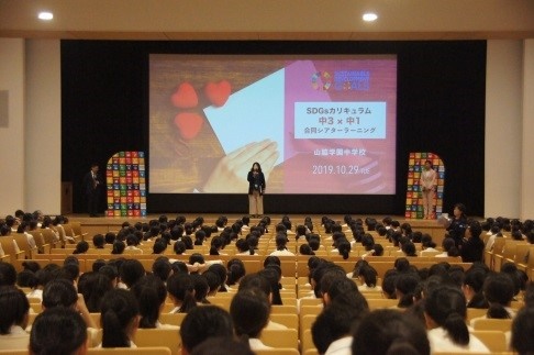 2019年10月29日(火)2学期中間テスト最終日の午後、日本アクティブラーニング協会、音楽座ミュージカルによる『SDGsカリキュラム 中1・中3合同シアターラーニング』を実施しました。