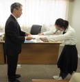 今回は東京都内中学校16校3,414名の応募があり、東京都審査において優秀賞を受賞した中学生21名のうち、本校の中学1年生1名が選ばれました!校長先生から表彰状と副賞の授与をしていただきました。応募作は全国審査に推薦され、11月下旬に結果が出ます。