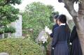 山脇学園の歴史を築いてきた先生方の眠る墓前で、生徒たちは凛とした態度で報告に臨み、生徒代表としての役割を立派に果たしました。