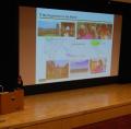 講演会では、まず趣味の海外旅行や実家から見える富士山の風景、今夢中になっている食べ物などの写真を見せながら河野さんの今のことを話してくださり、生徒も興味津々で、和やかな雰囲気の中始まりました。その後、中学生の頃の話に移り、当時大好きだった海外ドラマや食べ物など、生徒目線でのお話をしてくださり、生徒も『わかる!』と共感し、親近感を感じたようです。