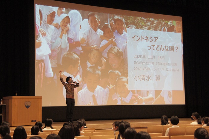 午前の部の前半には、JICA海外協力隊で活躍されていた小清水翼さんをお招きして、インドネシアについてお話をうかがいました。
