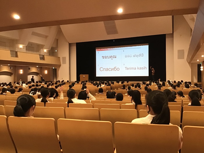 クイズや体験談を交えた和やかな講演会で、インドネシアについて楽しく学ぶことができました。講演会後は一人ひとり、「異文化」とは何か、どのように接しようと心がけていくかを考え、留学生受け入れに向けて理解を深めました。