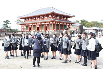 奈良公園のガイドさんの先導で、興福寺・東大寺の見学をしました。ガイドさんのお話は分かりやすくて面白く、奈良の歴史について深く学ぶことができました。