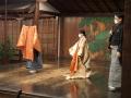 このあとは京都に移動し、大江能楽堂で体験と鑑賞をしました。面や装束を身に着けたり、小鼓の音の出し方、能独特の歩き方などを体験させていただき、観るだけではわからない能の世界をじっくり味わうことができました。『敦盛』(ダイジェスト版)の鑑賞ではみんな真剣に見入っていました。
