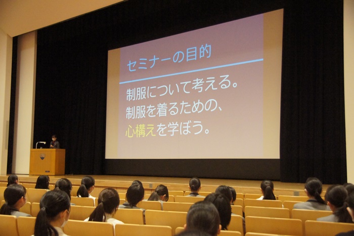1月20日(水)のHRで、株式会社トンボより講師の方をお招きして制服セミナー「制服の持つ力を知ろう」を行い、制服を着るための心構えを学びました。