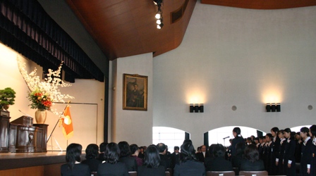 新入生を講堂に迎え、入学式が始まりました。