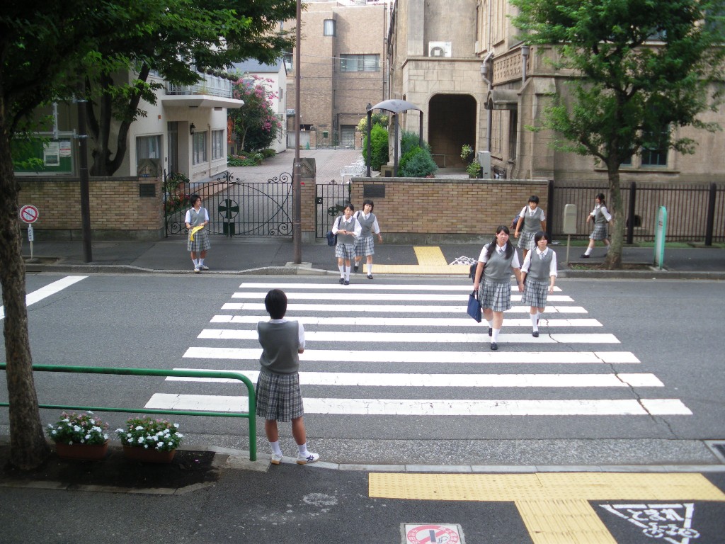 学校の前の横断歩道は、私たち生徒の他にも...